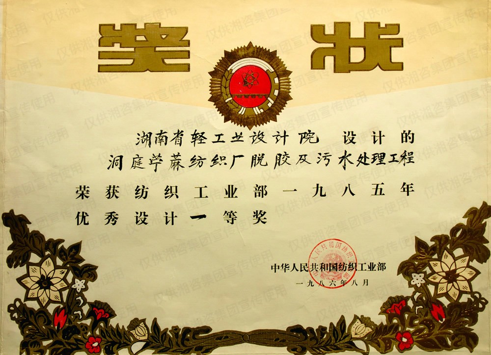 國家紡織工業(yè)部優(yōu)秀設(shè)計一等獎