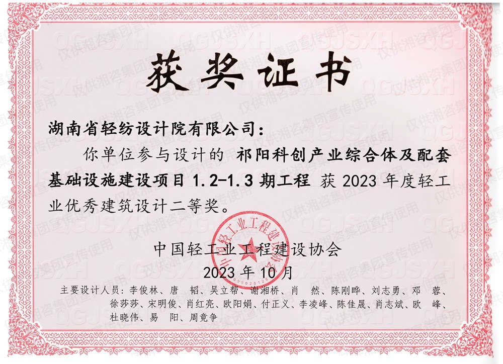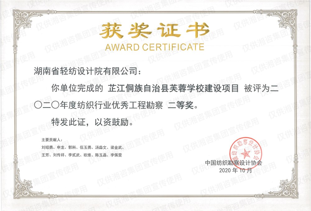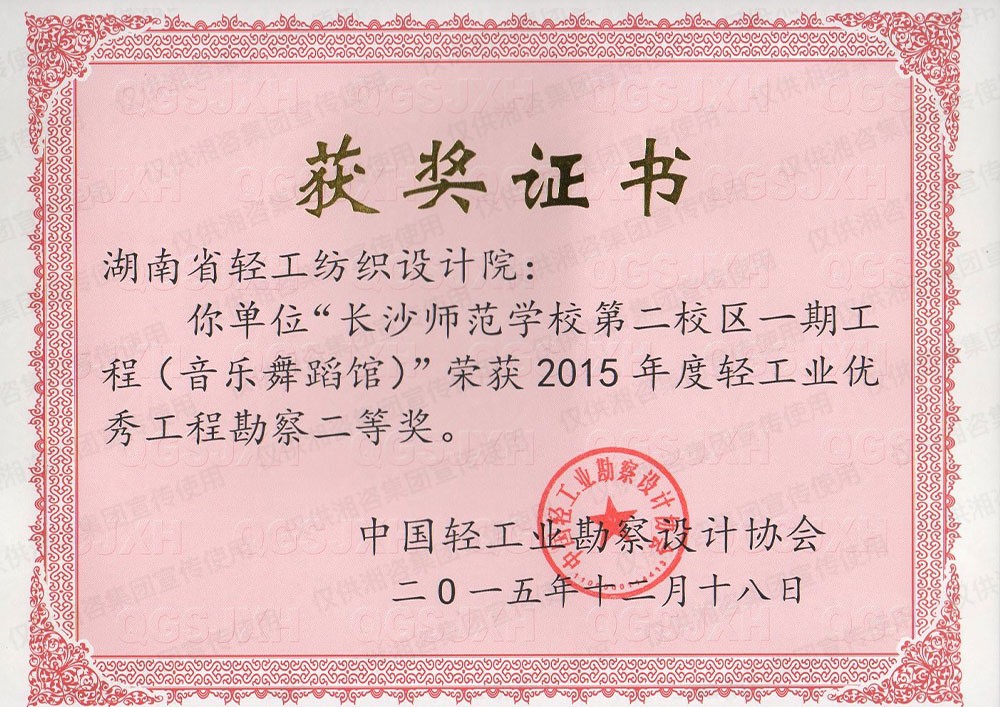 湖南省勘察設(shè)計協(xié)會優(yōu)秀工程勘察設(shè)計二等獎