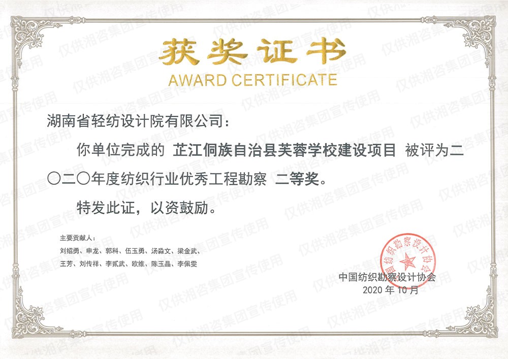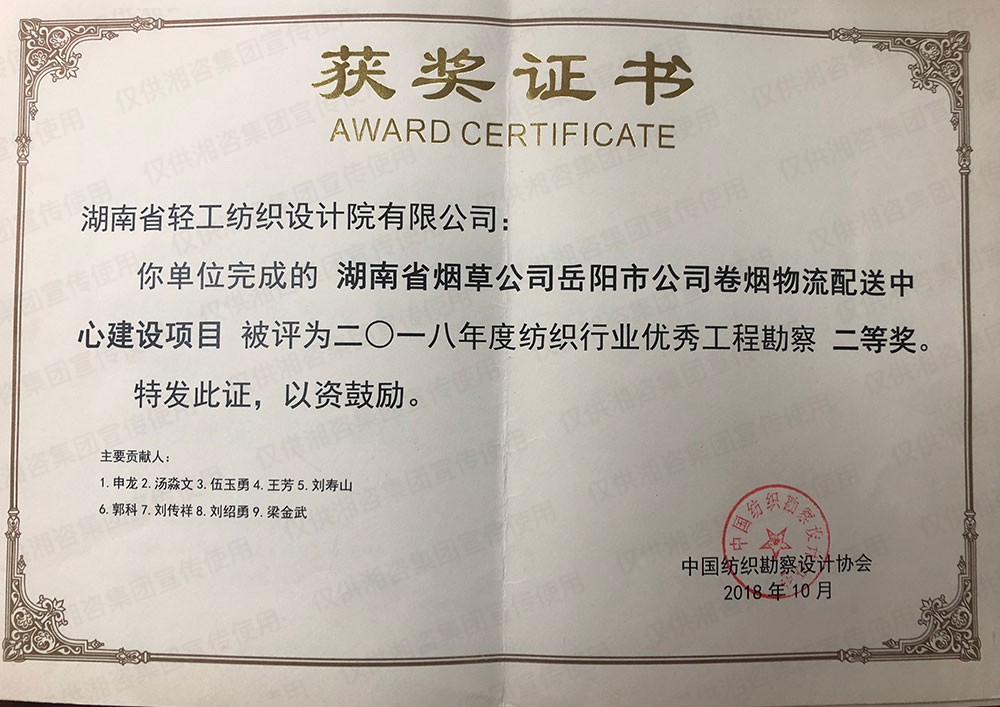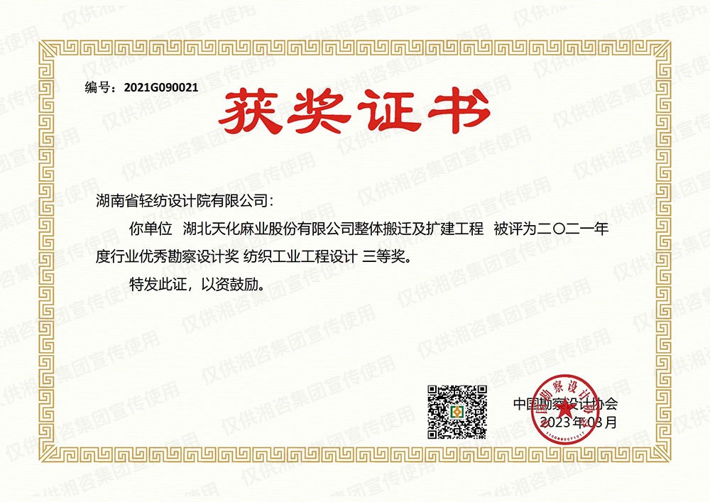 中國紡織勘察設(shè)計協(xié)會優(yōu)秀工程勘察二等獎
