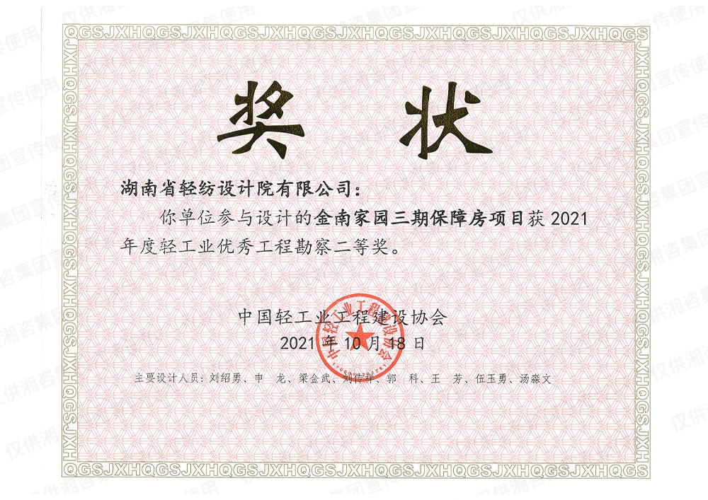 中國輕工業(yè)工程建設(shè)協(xié)會優(yōu)秀建筑設(shè)計二等獎