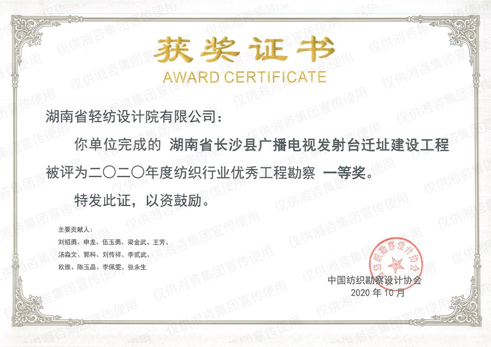 中國紡織勘察設(shè)計協(xié)會優(yōu)秀工程勘察一等獎
