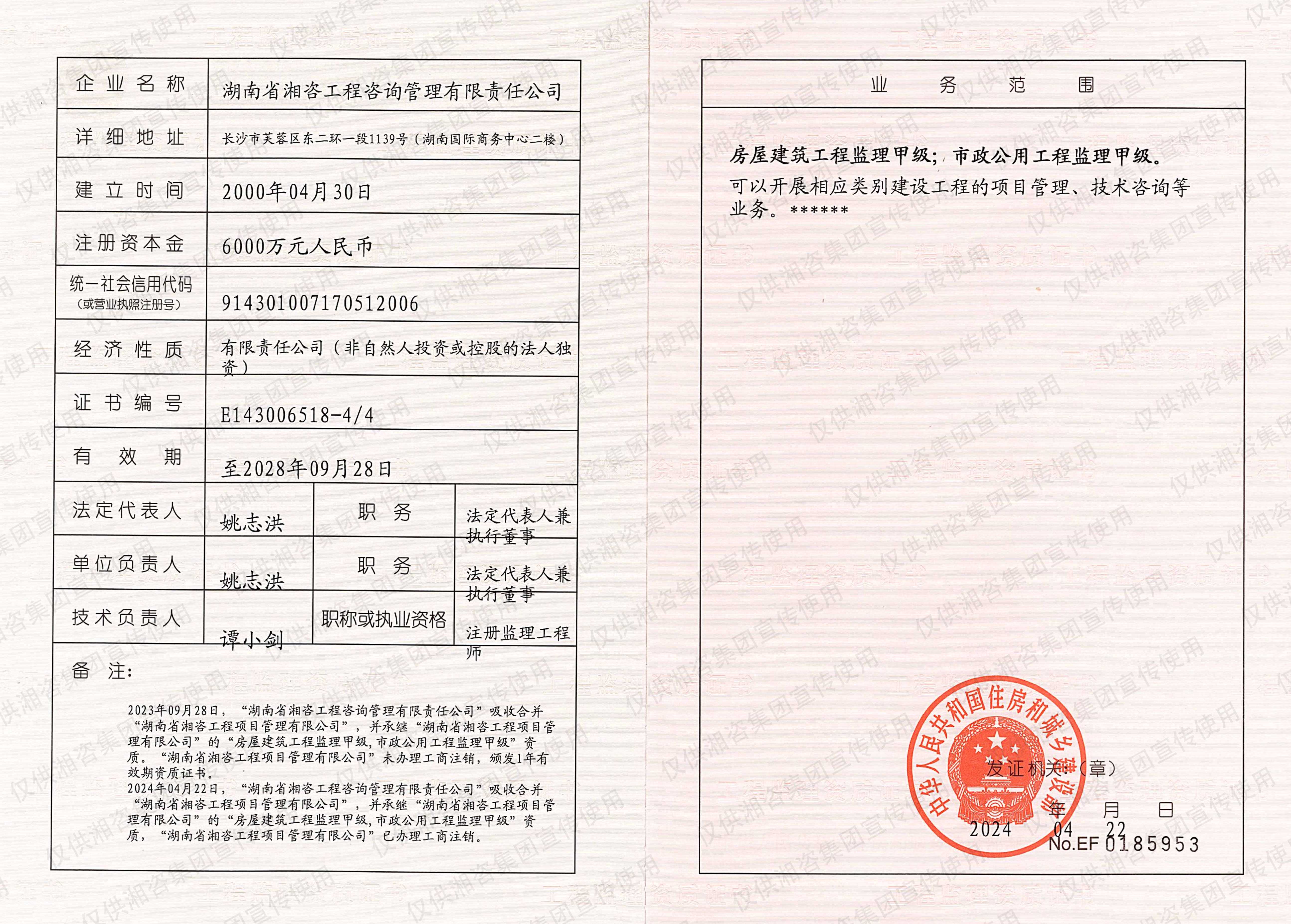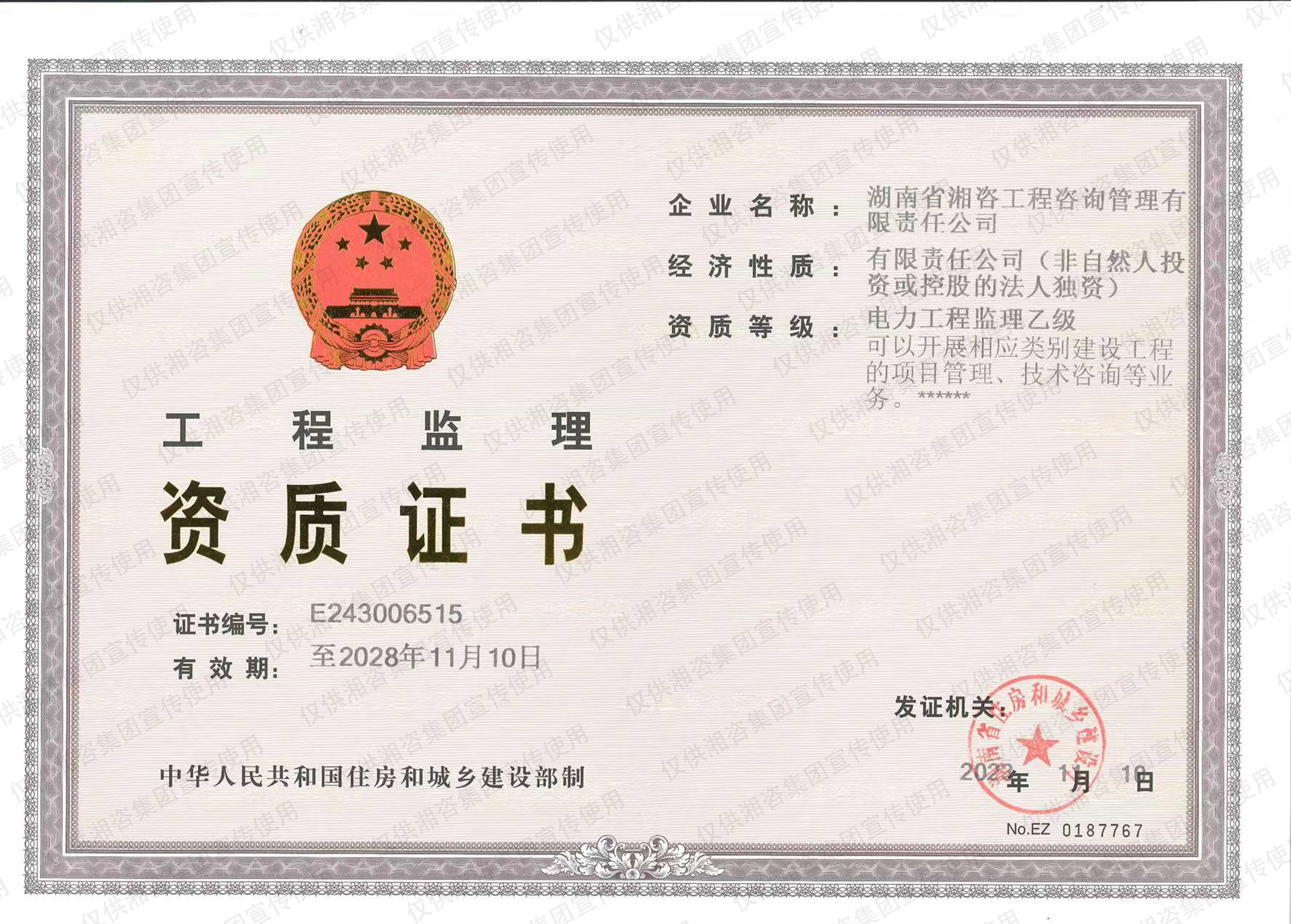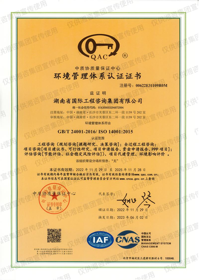 湖南省環(huán)境監(jiān)理證書(甲級資信單位)