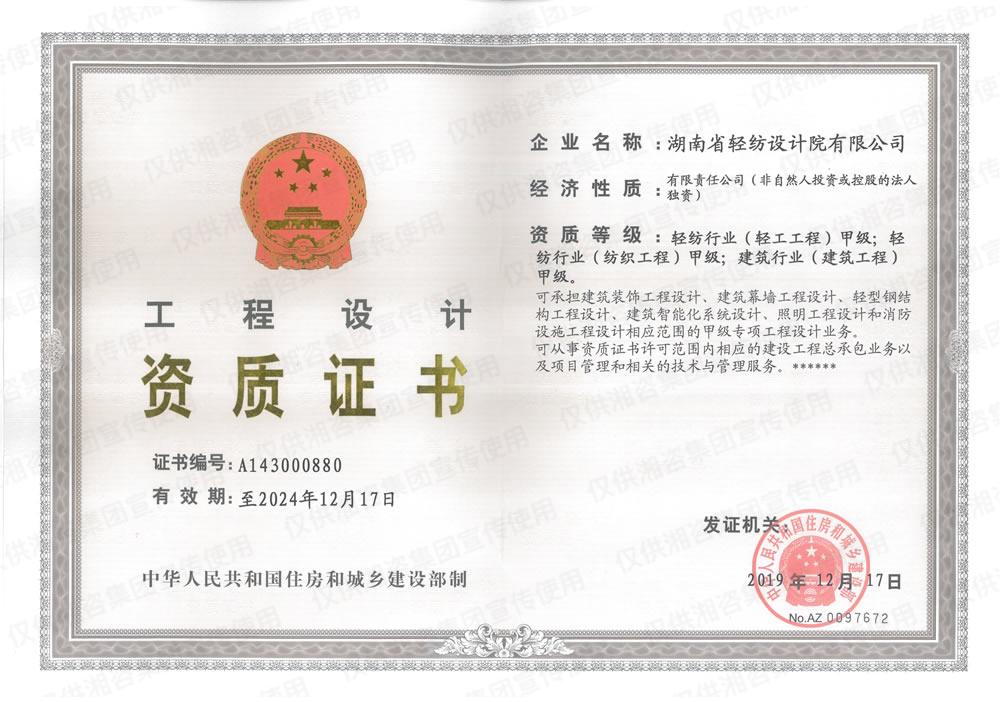 工程設計資質(zhì)證書-甲級
