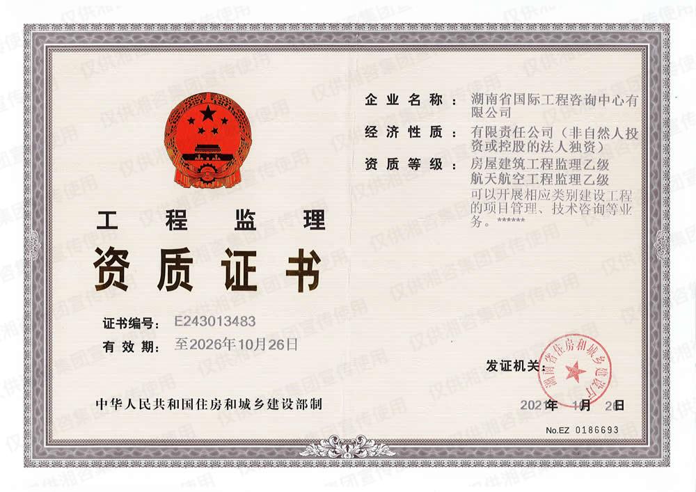 工程監(jiān)理資質(zhì)證書-乙級