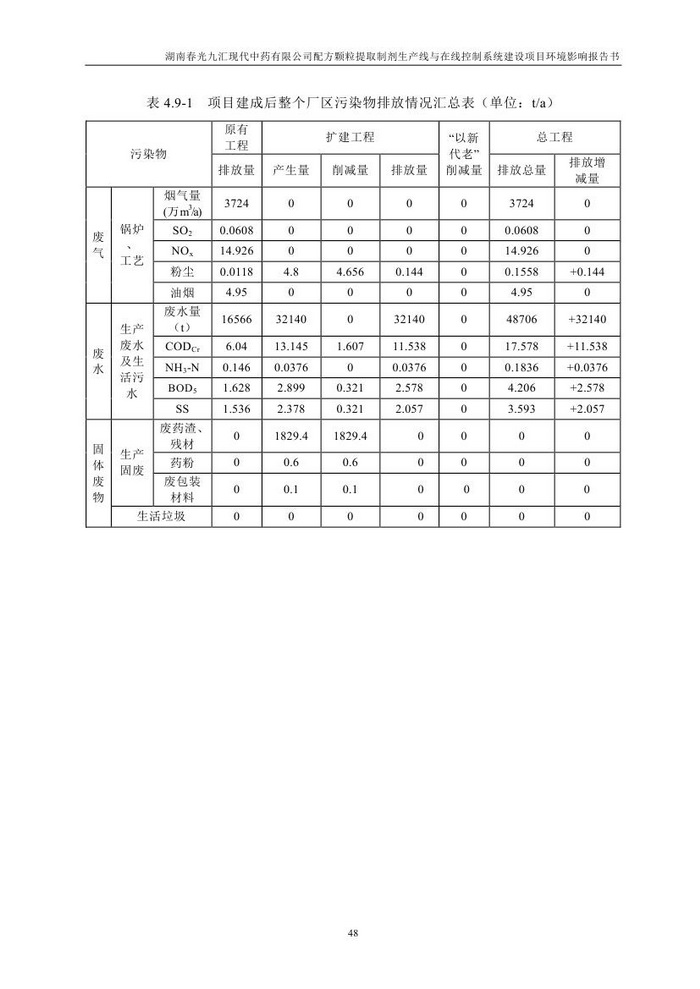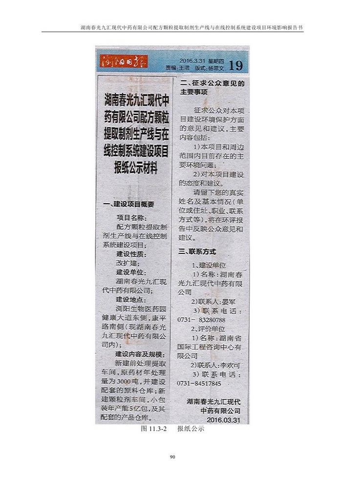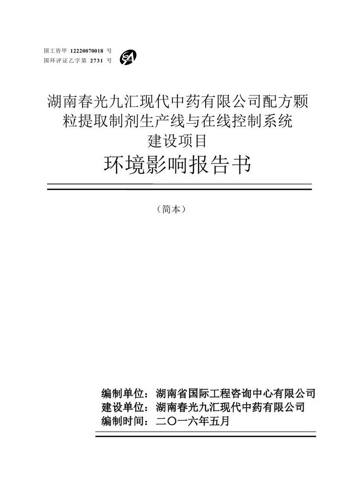 湖南春光九匯現(xiàn)代中藥有限公司配方顆粒提取制劑生產(chǎn)線與在線控制系統(tǒng)建設(shè)項(xiàng)目環(huán)評(píng)(簡(jiǎn)本)