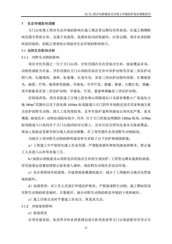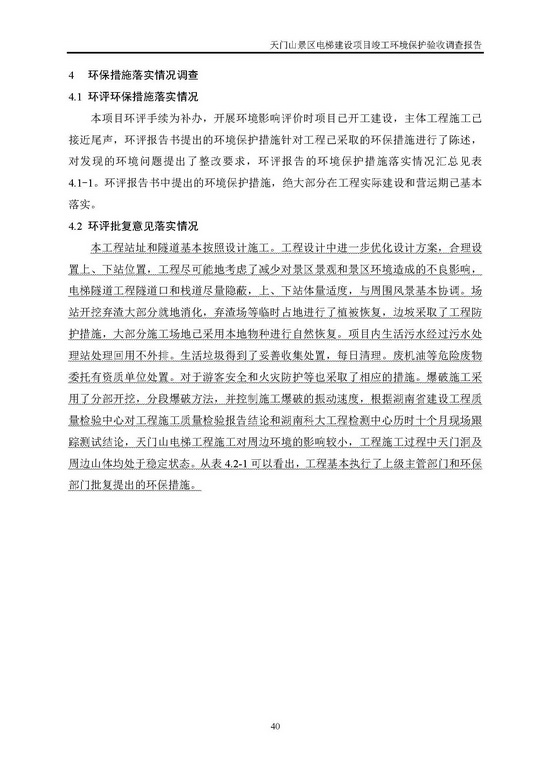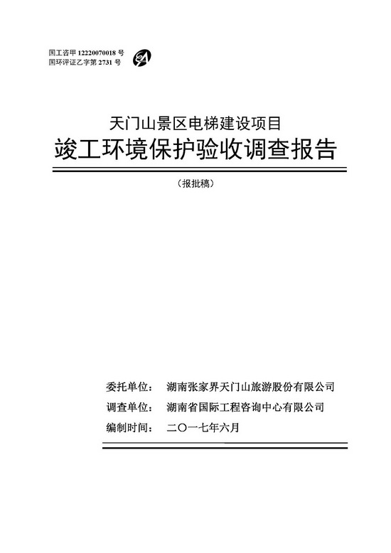天門山景區(qū)電梯工程變更項目環(huán)境保護(hù)驗收調(diào)查報告(全本公示稿)