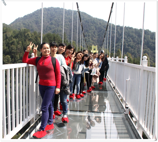 面對要穿過的玻璃橋,大家興致勃勃,躍躍欲試