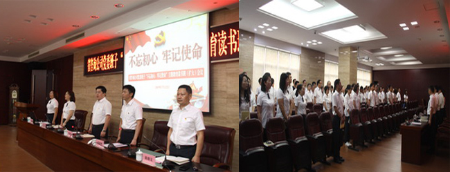 首先,黨委書記、董事長詹瓊雷帶領(lǐng)全體黨員重溫入黨誓詞,大家用滿懷激情的宣誓聲,表達(dá)了對黨的忠誠和扎實開展主題教育的決心。