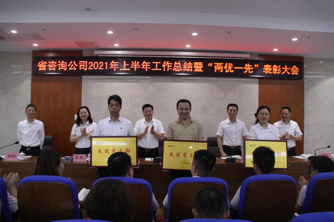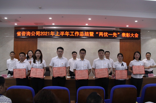 6月30日上午,省咨詢公司召開2021年上半年工作總結暨“兩優(yōu)一先”表彰大會,公司領導班子成員、公司本部全體干部職工和分子公司代表參加會議。會議由公司黨委書記、董事長詹瓊雷主持。
