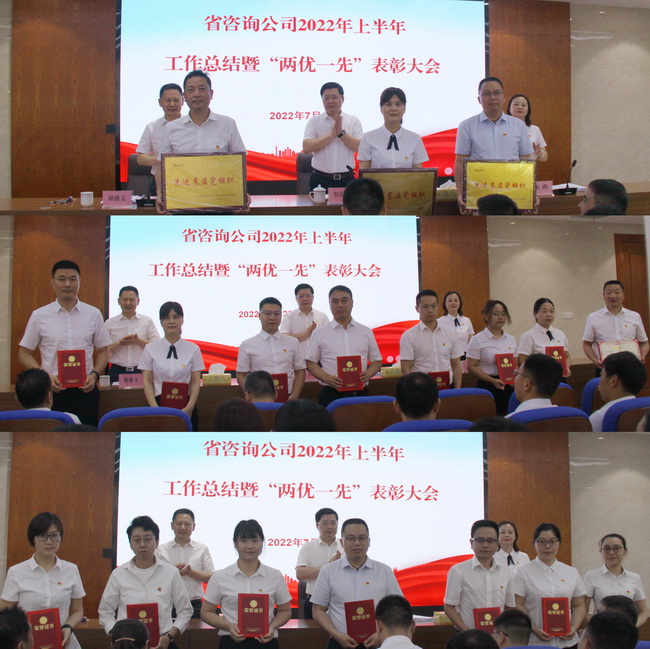 7月22日上午,省咨詢公司召開2022年上半年工作總結(jié)暨“兩優(yōu)一先”表彰大會,公司領(lǐng)導(dǎo)班子成員、公司本部全體干部職工和分子公司代表參加會議。會議由公司黨委書記、董事長詹瓊雷主持。