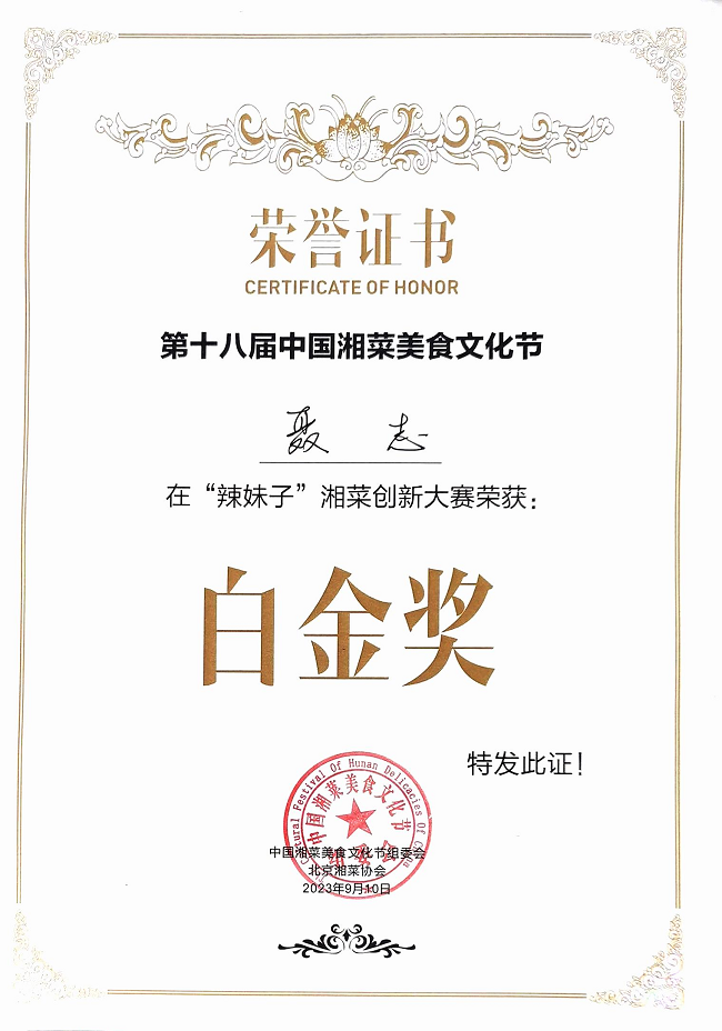 湘菜出湘,京城飄香。9月10日,由湖南省人民政府駐北京辦事處、湖南日報社、湖南省商務(wù)廳和長沙市人民政府聯(lián)合主辦的第十八屆中國湘菜美食文化節(jié)在北京盛大舉行。此次中國湘菜美食文化節(jié)共有60余位選手參賽,湘咨集團下屬北京澤相苑大酒店以主打菜品“攜手共進”參賽,榮獲此次大賽的最高獎項--白金獎。