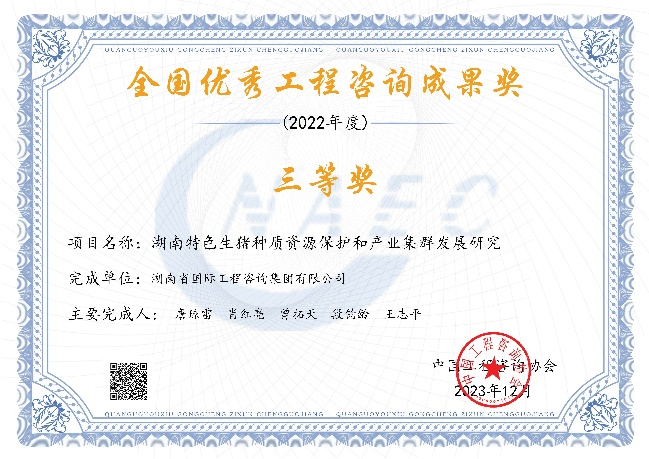 全國(guó)優(yōu)秀工程咨詢(xún)成果獎(jiǎng)是國(guó)家工程咨詢(xún)行業(yè)的最高獎(jiǎng)項(xiàng),每?jī)赡暝u(píng)選一次。截至今年,湘咨集團(tuán)共獲得全國(guó)優(yōu)秀工程咨詢(xún)成果一等獎(jiǎng)2項(xiàng)、二等獎(jiǎng)9項(xiàng)、三等獎(jiǎng)19項(xiàng)、優(yōu)秀獎(jiǎng)2項(xiàng)。這些獲獎(jiǎng)成果既是湘咨集團(tuán)在工程咨詢(xún)領(lǐng)域?qū)I(yè)能力和綜合實(shí)力的充分展示,也是集團(tuán)深耕主責(zé)主業(yè)聚焦創(chuàng)新發(fā)展的體現(xiàn)。