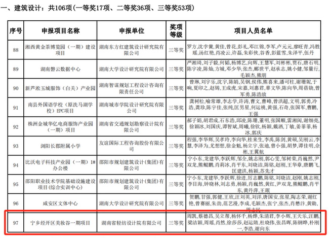 近期,省勘協(xié)公布了2023年度湖南省優(yōu)秀工程勘察設計獎評選結果,湘咨集團所屬省輕紡院共斬獲5項工程勘察設計獎。其中,寧鄉(xiāng)經(jīng)開區(qū)美妝谷一期項目、祁陽科創(chuàng)產(chǎn)業(yè)綜合體及配套基礎設施建設項目1.2-1.3期工程榮獲建筑設計獎;湖南中煙工業(yè)有限責任公司郴州卷煙廠易地技術改造項目榮獲工業(yè)設計獎;寧鄉(xiāng)經(jīng)開區(qū)美妝谷一期項目、長沙市火車南站區(qū)域排水改造工程榮獲工程勘察獎。