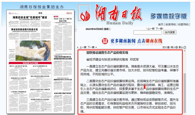 為順利實現(xiàn)“三高四新”美好藍圖,加快推進高質(zhì)量發(fā)展,湖南省委決定在全省開展解放思想大討論活動,面向社會開展“獻策湖南”金點子征集活動。湖南省國際工程咨詢集團有限公司(以下簡稱“湘咨集團”)作為省級“智囊團”積極響應,撰寫的《加快推動湖南生態(tài)產(chǎn)品價值實現(xiàn)》于4月9日獲湖南日報再次摘登。